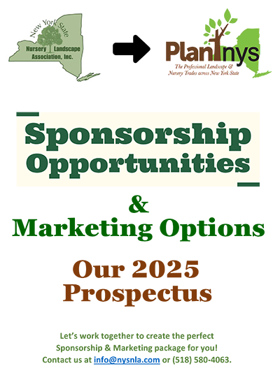 2025 Sponsorship and Marketing Opportunities - Updated with More Options!The New York State Nursery and Landscape Association (soon to be PlantNYS) offers companies and organizations a wide range of sponsoring and marketing opportunities that allow you to showcase your products, services and expertise. Your support allows NYSNLA-PlantNYS to advance its mission in support of the Green Industry across New York State. Our members are very loyal and like to do business with those who support the association. Take a look at our options and put together a package that meets your marketing, exposure and promotional needs. Our options are a la carte—and we have one complete package that provides year-round exposure to NYSNLA members and the public.